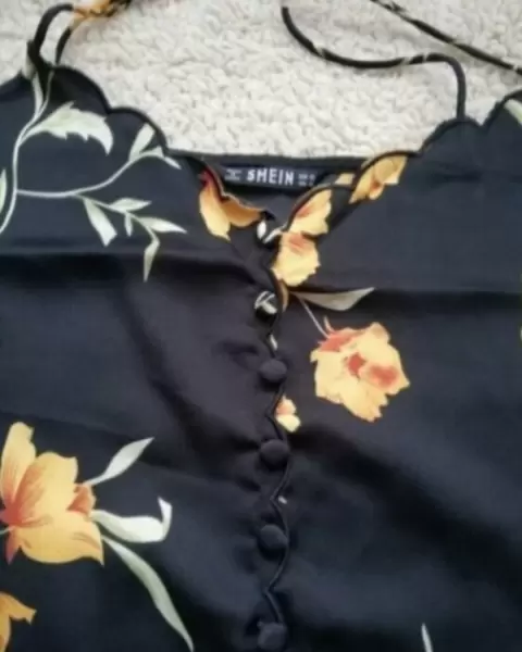 Hermosa blusa de tirantes tipo lencera, negra de satin con estampado de flores, a estrenar con etiqueta,
