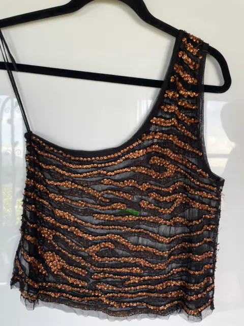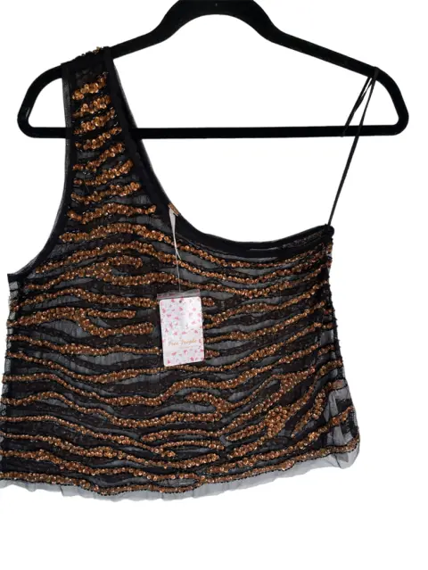 Blusa lentejuela Free People M. Blusa nueva con etiqueta, marca Free People. Talla M color negro con lentejuela en bronce. A un solo hombro. Medidas:Axila a axila: 43 cm Largo: 50 cm