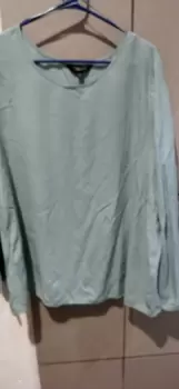 Hermosa y elegante blusa, color verde pastel, manga larga con ligero efecto mariposa, tela viscosa con excelente caída, marca Lieb, talla 2XL