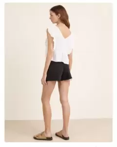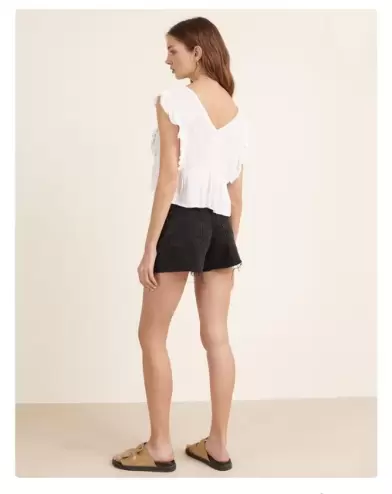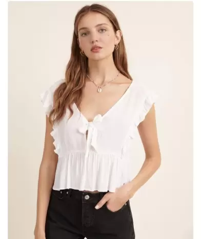 Hermosa blusa fresca.Tela ligeraRe lovedMarca españolaCorta con olanes en los tirantes, tiras al frente para amarrarse en moño.