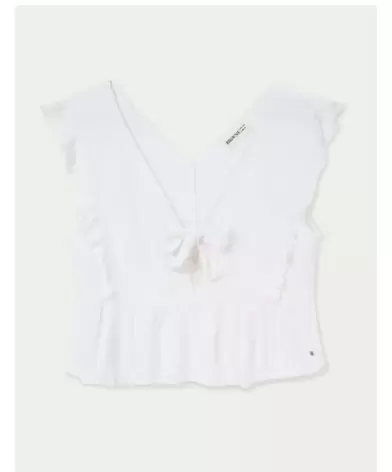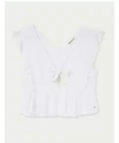 Blusa ligera 🤍. Hermosa blusa fresca.Tela ligeraRe lovedMarca españolaCorta con olanes en los tirantes, tiras al frente para amarrarse en moño.