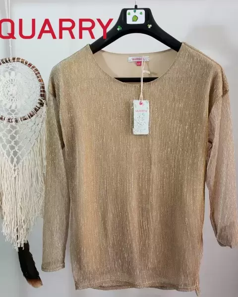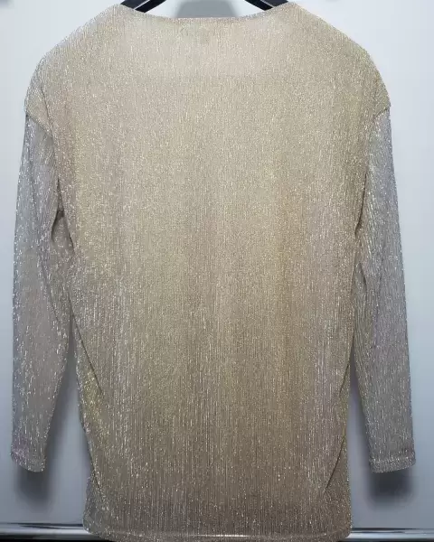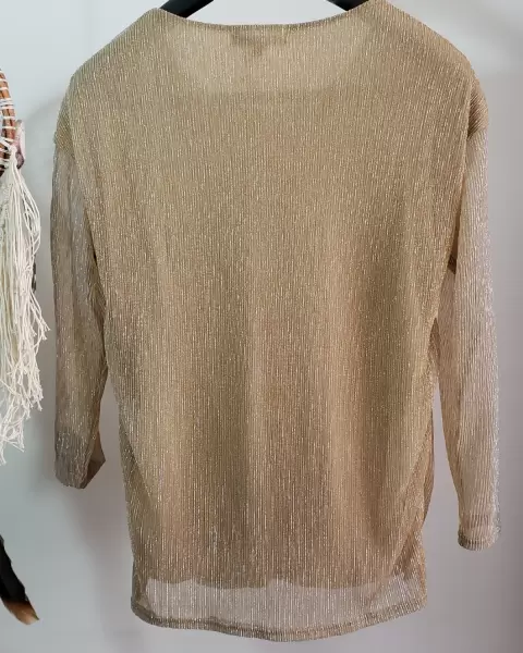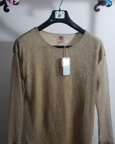 Blusita dorada de manga larga, es de tela ligera, está nueva y con etiqueta.Talla mediana, se moldea muy bonito al cuerpo.