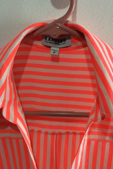 Blusa ligera talla M neon. Blusa neón marca express sin mangaes larga, llega debajo de la cadera, sin detalles, solo una muy mínima mancha azul que se muestra en una fototalla S