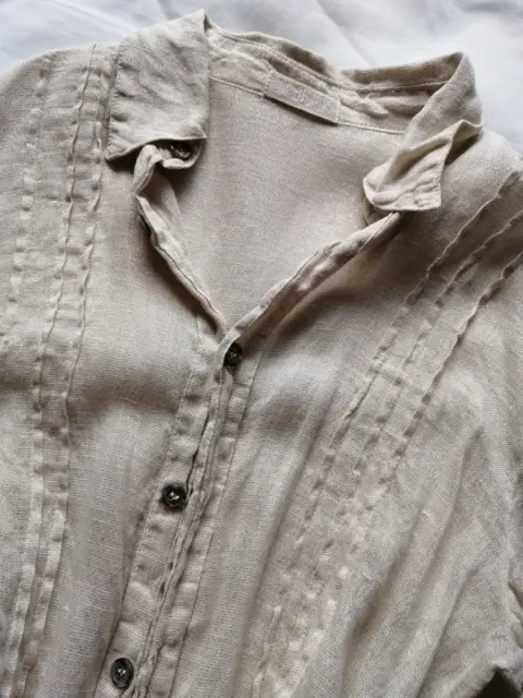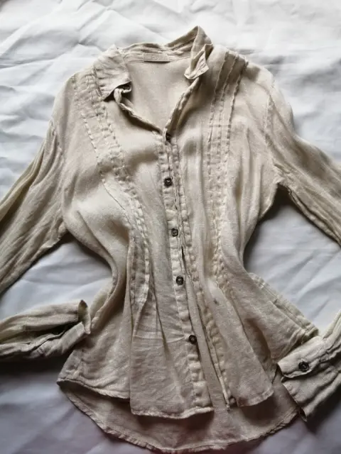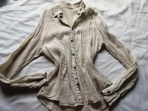 Blusa lino,beige con brillos S-M. Blusa manga larga, talla S-M, tela ligera, lino con brillos, talla casual o formal