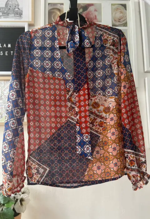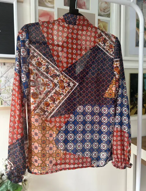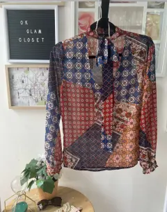 Blusa LOB de tela en transparencia, manga larga escotada con cinta en el cuello tipo corbata, la tela no es strech queda hermosa con jeans y pantalones de vestir, es talla S y queda también a S