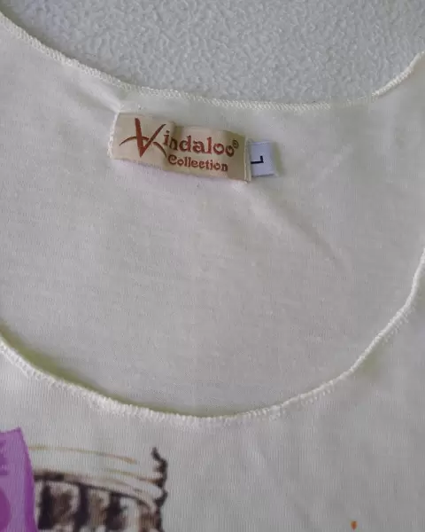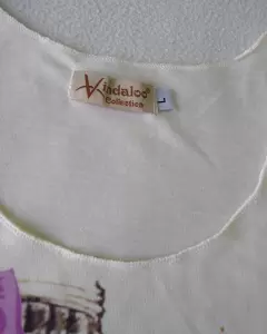 Hola chic's!!Blusa de manga corta nueva, muy linda de Madrid, nueva, con dibujo cool!Color perla clarito, forma excelente silueta en talla L, queda bien a MMedidas: Ax-Ax:47 Largo:63Estira muy poco.Visita mi closet!!!, y arma tu paquete con descuento 💞🤗