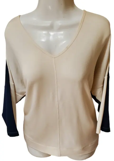 Blusa manga 3/4. Blusa manga 3/4, dos colores beige de frente y la espalda azul marino. Viene amplia, talla s, le queda tambien a una talla mediana