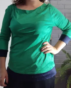 Blusa manga 3/4 verde bandera , la tela es muy suave , la modelo es talla M 66kg , queda perfecta con jeans