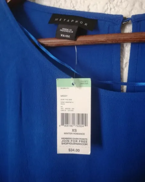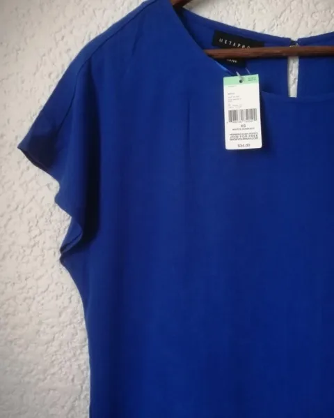Nueva con etiquetaTalla XSAzul rey 100% rayónMedidasHombro 46 cmAxila 49 cmLargo desde hombro 60 cm