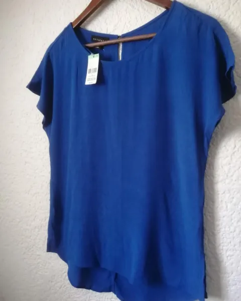 Blusa manga corta. Nueva con etiquetaTalla XSAzul rey 100% rayónMedidasHombro 46 cmAxila 49 cmLargo desde hombro 60 cm