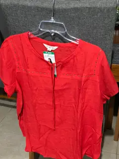 Blusa manga corta, roja nueva talla EG con detalles al frente en color cobre, tela fresca, Marca Leo & Nicole