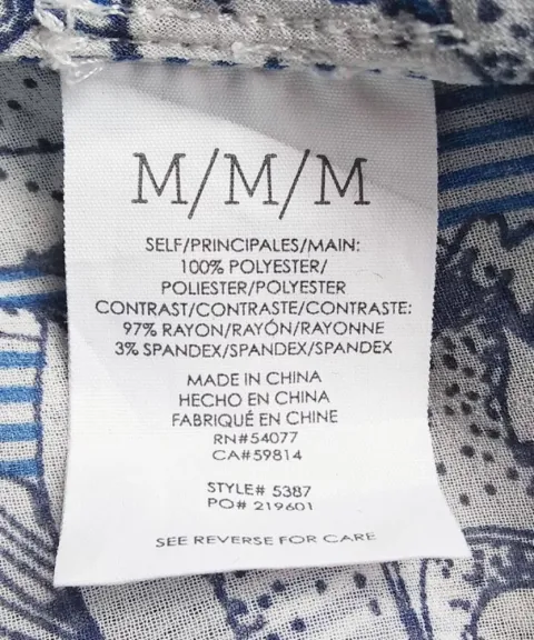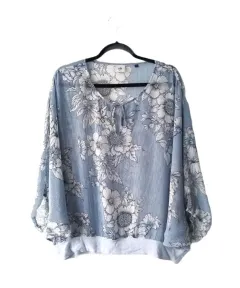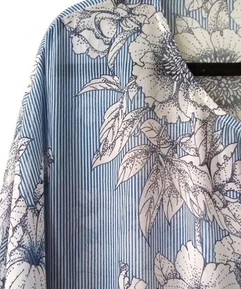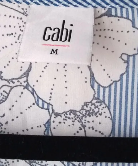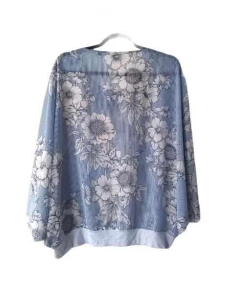 Blusa traslúcida floral a rayas azules con mangas tipo dolman tres cuartos talla M de la marca Cabi. El producto es nuevo sin etiqueta de precio en excelentes condiciones sin detalles. Proviene de un hogar libre de humo de tabaco y mascotas.100% poliéster.
