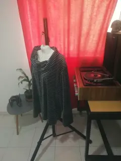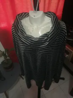 Increíble diseño con líneas horizontales en gris y negro 🌚🌑🦓👁️🌚 cuello olgado y manga larga. Lista para colgarla en tu clóset