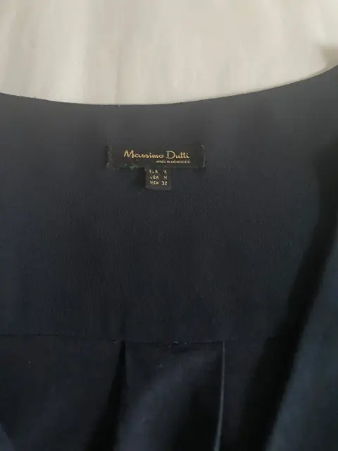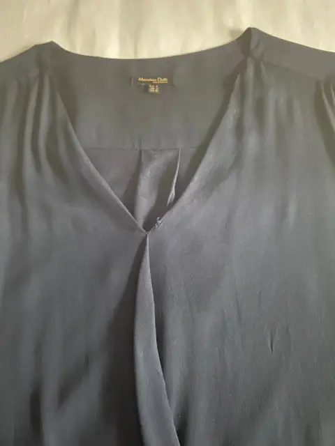Reestrena… Está blusa luce espectacular con jeans, o con pantalón de vestir. La tela es suelta lo que hace que luzca muy elegante. En el frente tiene un poco roto y descosido, pero se puede arreglar. Medidas:Hombro 43 cm Axila a axila 50 cm