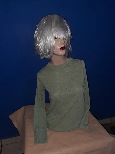 Blusa manga larga marca Cherokee color verde con brillitos plateados talla G