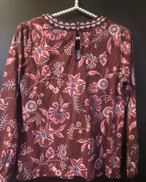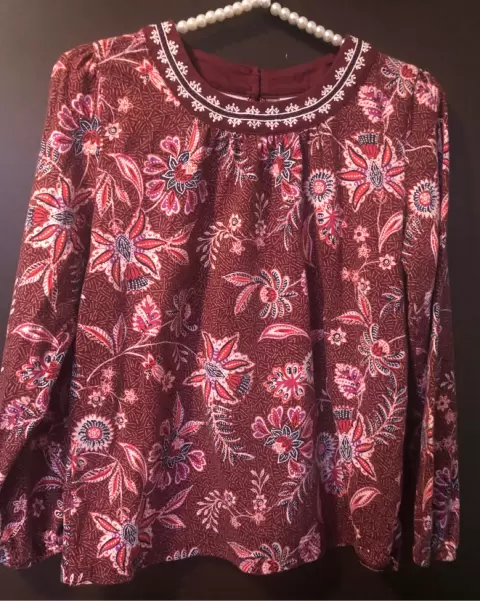 Blusa manga larga !. Hermosa blusa manga larga con resorte y diseño floral Realmente hermosa con cuello bordado y doble botón