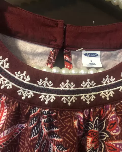 Hermosa blusa manga larga con resorte y diseño floral Realmente hermosa con cuello bordado y doble botón