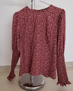 Blusa manga larga con flores. Blusa campesina color rosado con café es floreada. Las mangas tienen resortes así que que son ajustadas.
