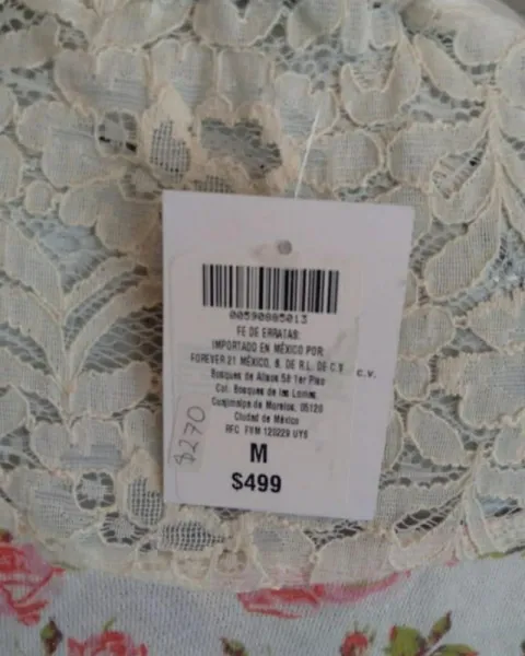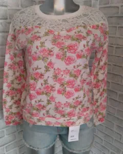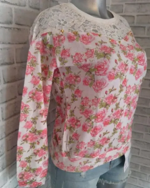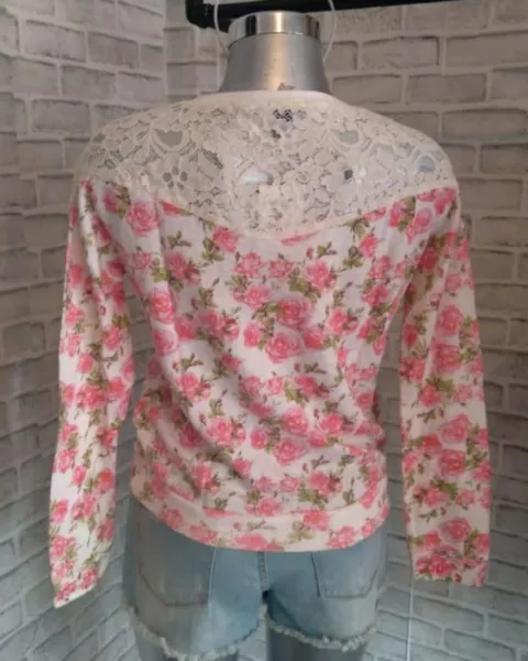 Blusa manga larga marca Forever 21 floreada color rosa encaje blanco es nueva con etiquetas