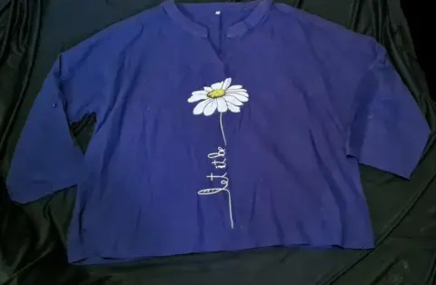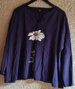 BLUSA MANGA LARGA TALLA 2XL. CAMISA MANGA 3/4,COLOR AZUL MARINO, TARE ELEVADORES EN LOS COSTADOS, ESTAMPADO, MARCA SHEIN, DETALLE MANCHA (CASI NO SE VE )MANGA IZQUIERDA 4TA FOTO, DE AXILA A AXILA 73 CM LARGO 60 CM, LIGERO ESCOTE EN "V"
