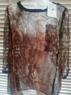 Blusa manga larga con estampado de animal print, tela muy delgada (transparente), talla M nueva marca Lucy & Có. Muy hermosa!!!