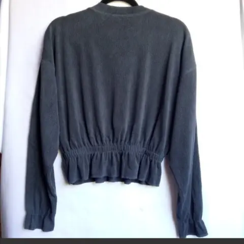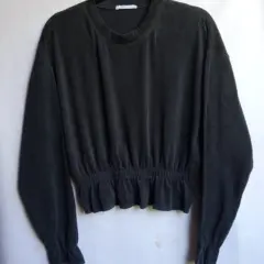 Blusa manga larga ZARA. Blusa de manga larga ZARA, con elástico en la cintura y en los puños, estilo holgado la tela es súper suave y comoda, el color es color gris oscuroTalla SMedidas tomadas por un solo lado:*Hombros 58 cm*Axila-Axila 57 cm*Cintura 34 cm (estira es elástico)*Largo 52 cm⚜️ Por favor 🙏, si vas a ofertar, sea solo porque tú compra es segura ⚜️