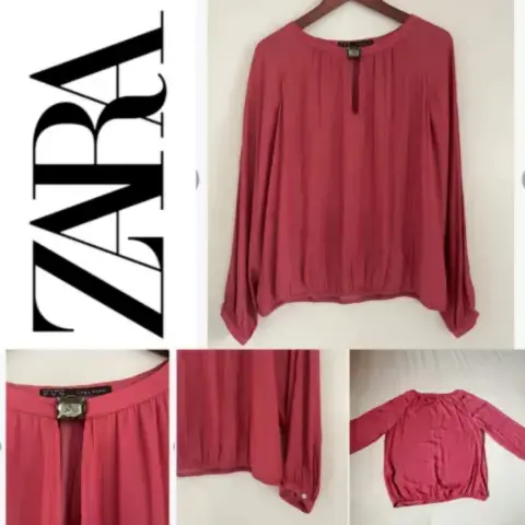 Blusa manga larga ZARA. Se encuentra en muy buen estado, no tuvo tanto uso. Sin problemas en costuras. Talla XS, pero viene amplia para una talla S o M. El tono que venía especificado es "Marsala".