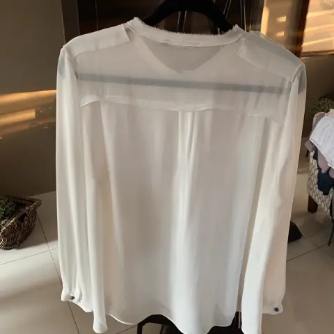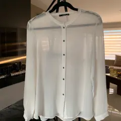Blusa Mango transparente. Hermosa blusa de gasa Mango , transparente con botones de acero , muy linda y elegante , úsala con falda negra y botas , medidas axilas 58, cintura 68, largo 67, largo manga 56, totalmente nueva