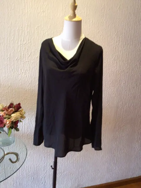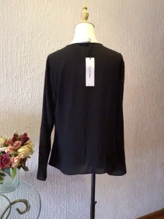 BLUSA COLOR NEGRO MARCA CALVIN KLEIN, TALLA MEDIANA MANGA LARGA CON ETIQUETA CUELLO ALTO, TELA POLYESTER, HERMOSA COMBINABLE CON LO QUE SEA