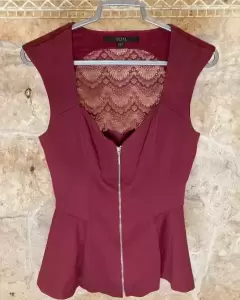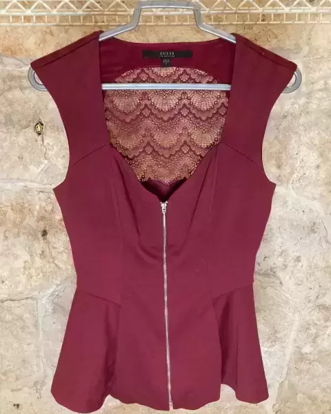 Blusa marca Guess. Blusa con cierre al frente, diseño que marca la cintura, hermoso encaje en la parte trasera