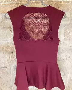 Blusa con cierre al frente, diseño que marca la cintura, hermoso encaje en la parte trasera
