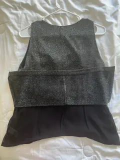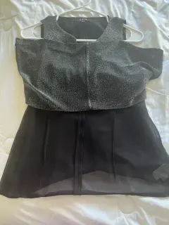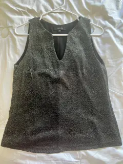 Blusa sin manga marca JULIOTalla 6Usada, varias lavadasSin detalles No transparenta, tiene un fondito negro integrado Se ve muy linda