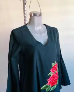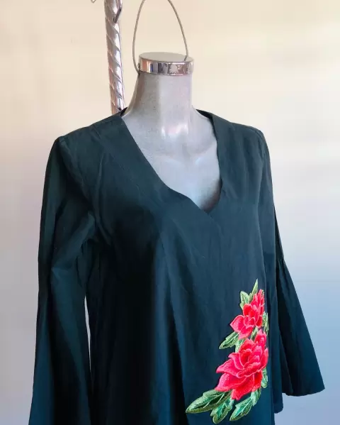 HERMOSA BLUSA MARCA LOB, EN COLOR NEGRO CON APLICACIÓN DE FLOR BORDADA EN UN COSTADO. MANGA LARGA Y ACAMPANADA. TALLA CHICA, EXCELENTE PAR TODO TIPO DE OCASIÓN. ENVÍO LA PRENDA SANITIZADA, USO MATERIAL RECICLADO GRACIAS POR TÚ COMPRENSIÓN 😊
