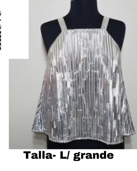 Blusa metálica Maeve. Top sin mangas talla- L //metalico plateada antropologie maeve, medidas de busto 110cm y de larga 46cm : con foto