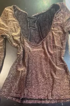 Blusa metalizada con escote profundo. Blusa metalizada brillosa con un espectacular y sensualísimo escote en la espalda perfecta para estos eventos de día y de noche, porque hasta con unos jeans se ve totalmente en tendencia. Color marrón chocolate que brilla divinoHOMBRO 34LARGO 55MANGA 60PECHO 73