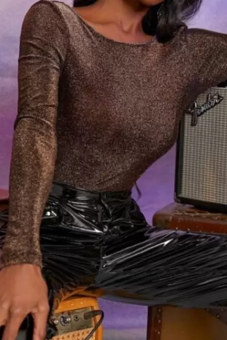 Blusa metalizada brillosa con un espectacular y sensualísimo escote en la espalda perfecta para estos eventos de día y de noche, porque hasta con unos jeans se ve totalmente en tendencia. Color marrón chocolate que brilla divinoHOMBRO 34LARGO 55MANGA 60PECHO 73