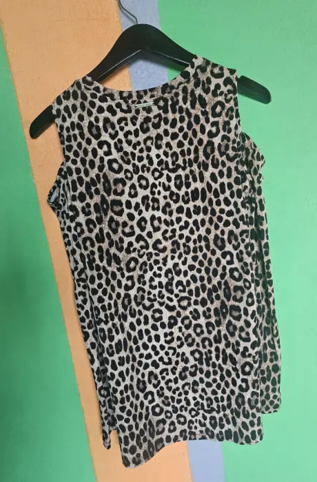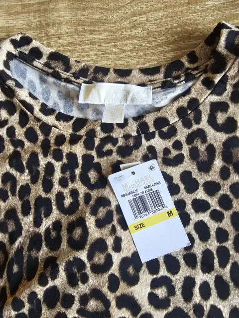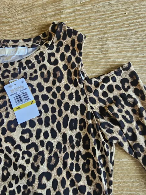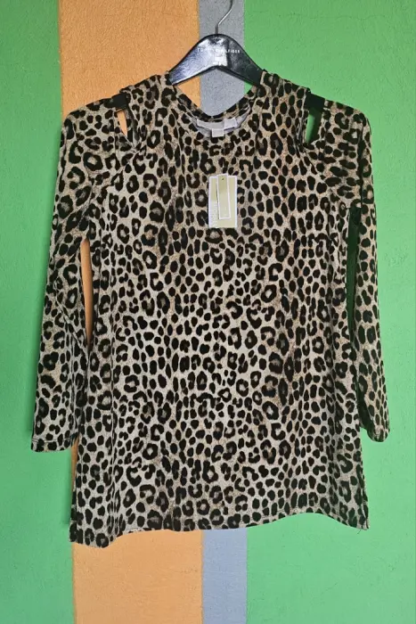 Coqueta blusa Michael Kors, diseño en animal print, aberturas a la altura del hombro, Nueva.