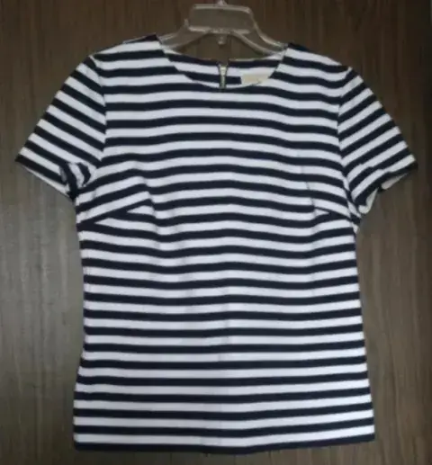 Blusa manga corta Michael Kors Talla LRallada blanco y negroCorte rectoPoliester y Spandex Medidas⬅️➡️Hombros 40 cmEspalda 52 cm⬆️⬇️Largo 62 cm