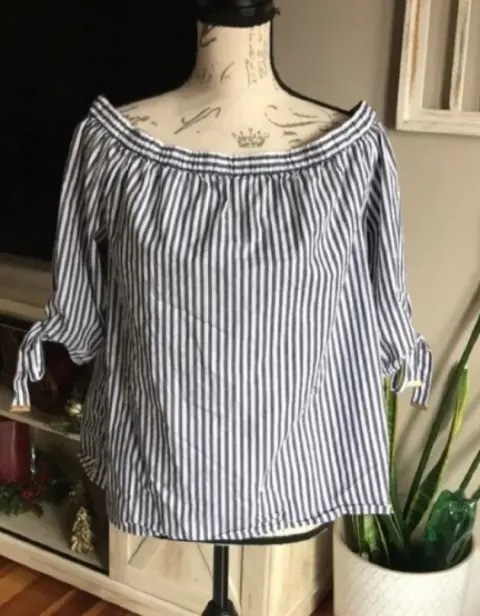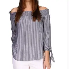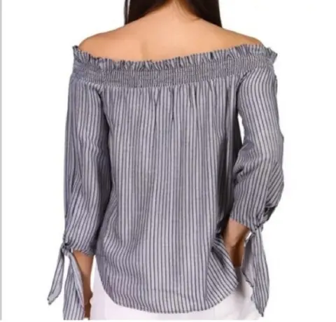 Michael Kors Blusa con hombros descubiertos a rayas axila axila 50 cm hombro a hombro 43 cm altura 49 cm cualquier duda estoy a tus órdenes primeras tres imágenes ilustrativasMICHAEL Michael KorsTALLA (M)