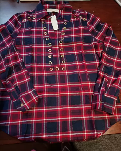 Hermosa blusa Michael Kors!!!Original y nueva con etiquetas!!Disponible talla S!!Detalles en dorado en cuello y espalda,manga larga con botones también dorados y nombre de la marca Michael Kors!!Súper linda!! Checa mi clóset cuento con más modelos disponibles!! Con gusto resuelvo cualquier duda!!