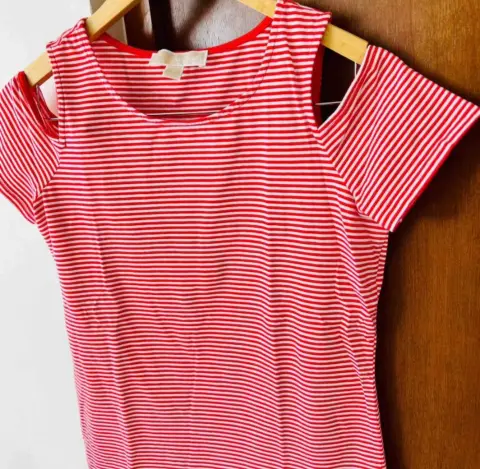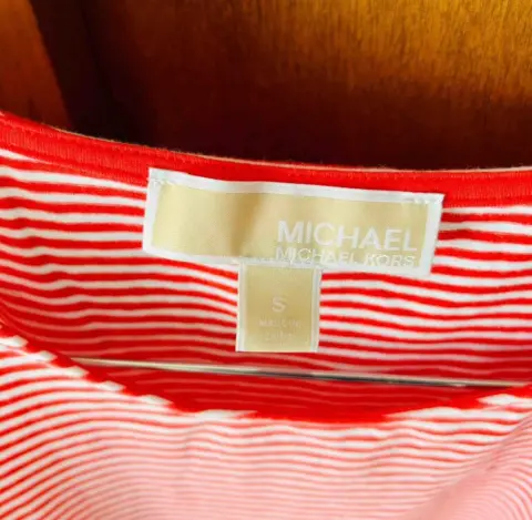 Blusa Michel kors. Es súper ligera el color es rayas rojas con blanco el detalle de los hombros está genial y los accesorios de la marca la hace lucir mucho