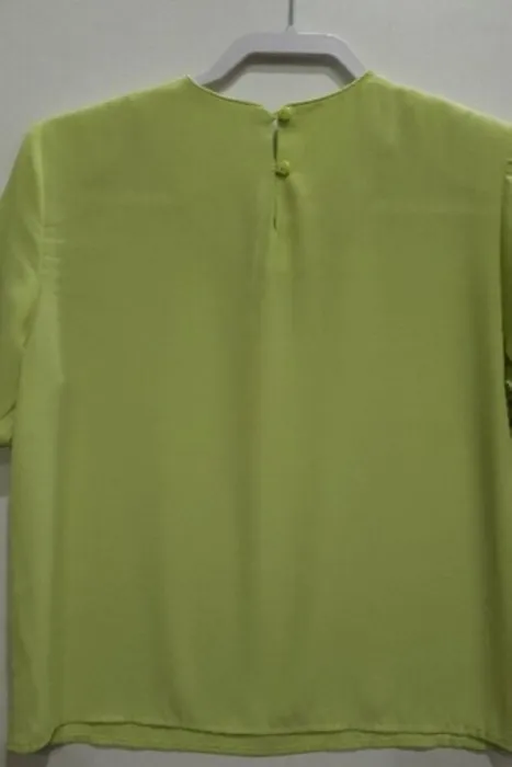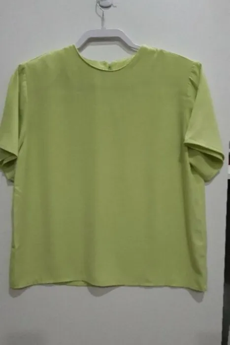 Blusa Moderna Verde Limón. Blusa de vestir color verde limón DressbarnTiene hombreras y botones en la parte de atrás.La tela es delgada. Se transparenta poquitoTalla M. Medidas aproximadas: 50cm de axila a axila,57cm de largo a partir del hombro.*TODAS MIS PRENDAS SE DESINFECTAN CON LYSOLLAVANDERIA PARA TU MAYOR TRANQUILIDAD*