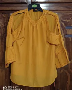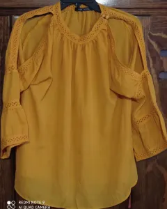 Blusa Mostaza. Blusa formal mostaza tiene escote en los hombros lo que te hace lucir muy coqueta, es extragrande