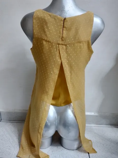 Blusa Mostaza. Linda 👚 juvenil, color mostaza, manga escotada con apertura en la espalda y a los lados, con su fondo como top, poco uso, talla 9, mediana, pero en buenas condiciones