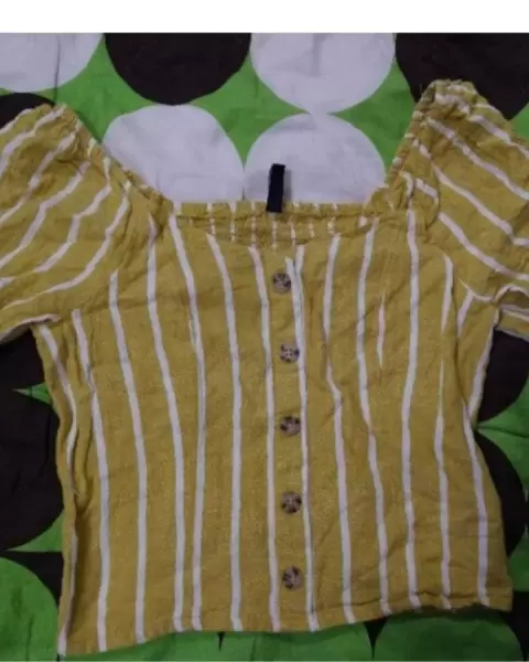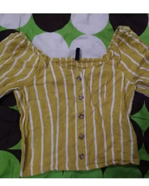 Hermosa blusita campesina color mostaza con rayas blancas. Atas tiene resorte. PROMOCIÓN: escoje cualquier prenda de mi closet que cueste 150 y queda al 2x1 comenta cual quisieras agregar a tu paquete, yo subiré una captura de la prenda a la publicación comentada y listo te mando las 2 prendas por 150 Aprovecha 😍 estaré subiendo varias prendas...