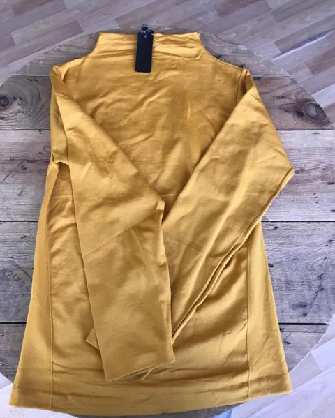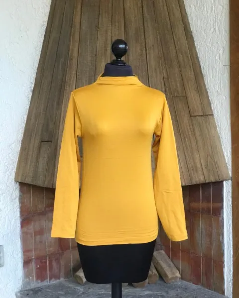 Blusita formal térmica de licra algodón color mostaza es un y talla queda desde la talla cero a la 36 es calientita pero no es gruesa