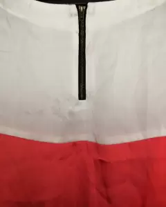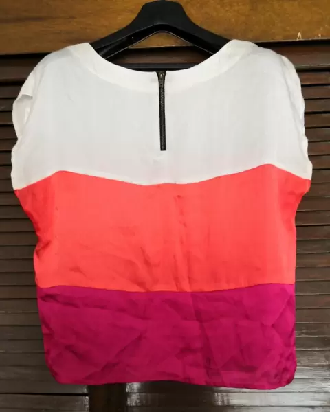 Blusa multicolor satinada, cuello redondo, manga corta, con cierre enbla parte posterior, ideal para un look casual o formal