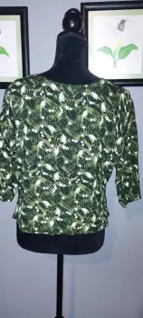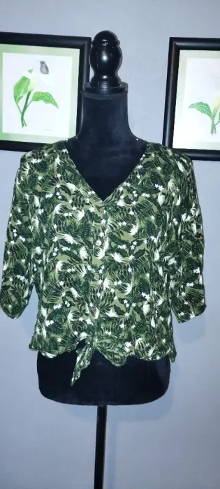 Bonita blusa multicolor negro, blanco y verde.Talla EGMarca non stopManga 3/4Bonito detalle de botones al frente y amarre en cintura.