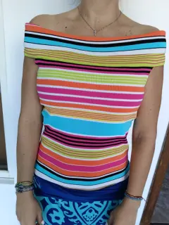 Blusa multicolor off shoulders. Toda la tela estira. Linda y sin detallesUnitalla: queda bien a talla L