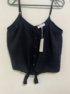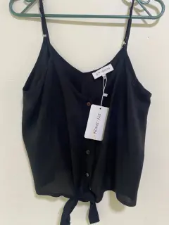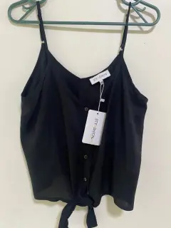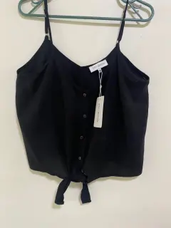 Blusa negra. Blusa ligera, con tela fresca, nueva con etiqueta tiene enfrente para hacer un moño y la prenda luce mejor.